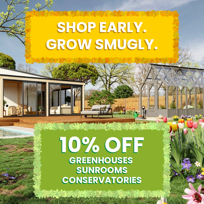 Shop Early. Grow Smugly. Greenhouses, Conservatories and Sunrooms -10%