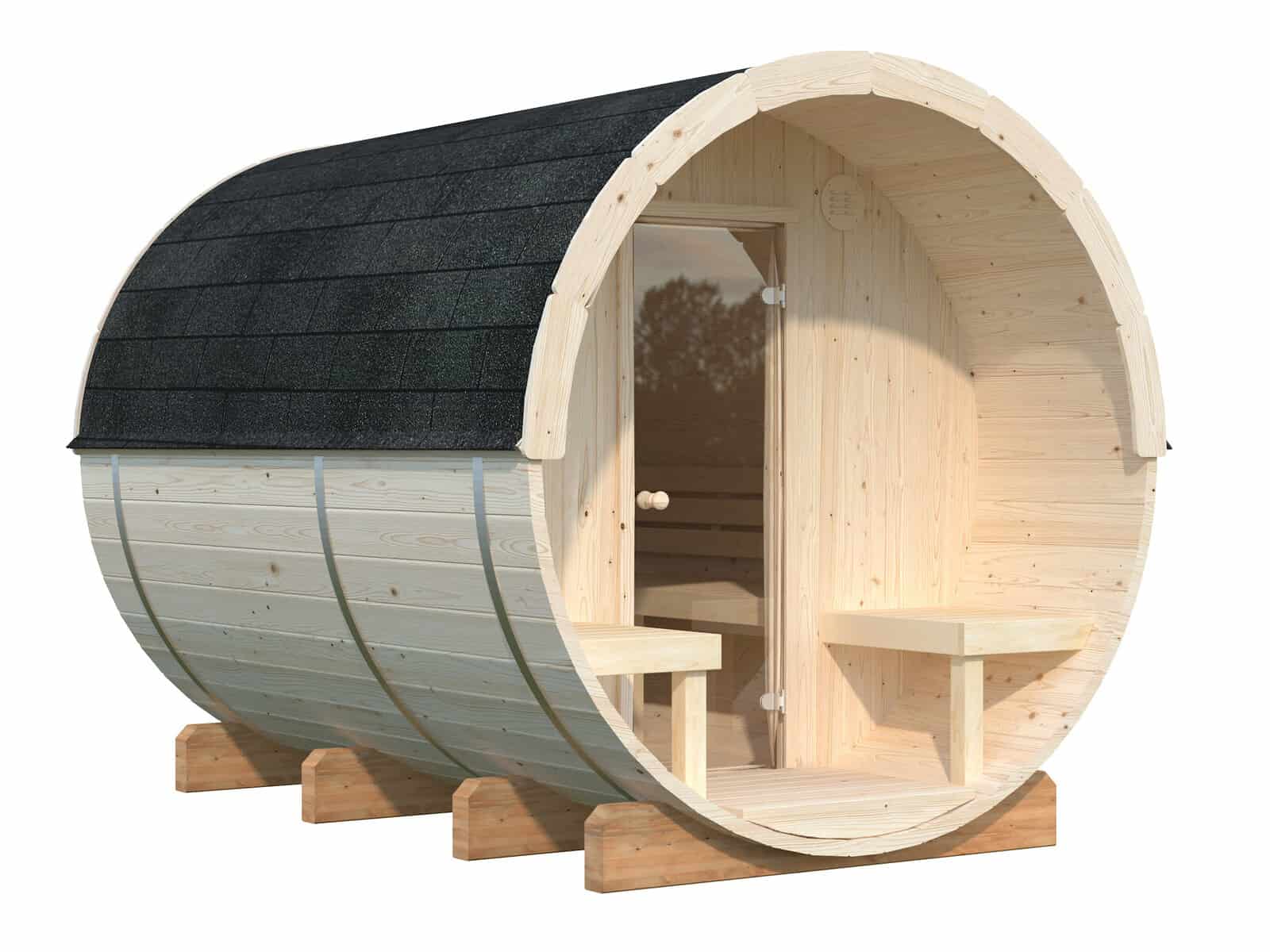 Introducing the Anita L, an elegantly designed timber garden barrel sauna that merges traditional Scandinavian sauna culture with modern functionality. Perfect for those with a bit more space, this model offers a generous interior and a relaxed seating arrangement, suitable for up to four persons.
