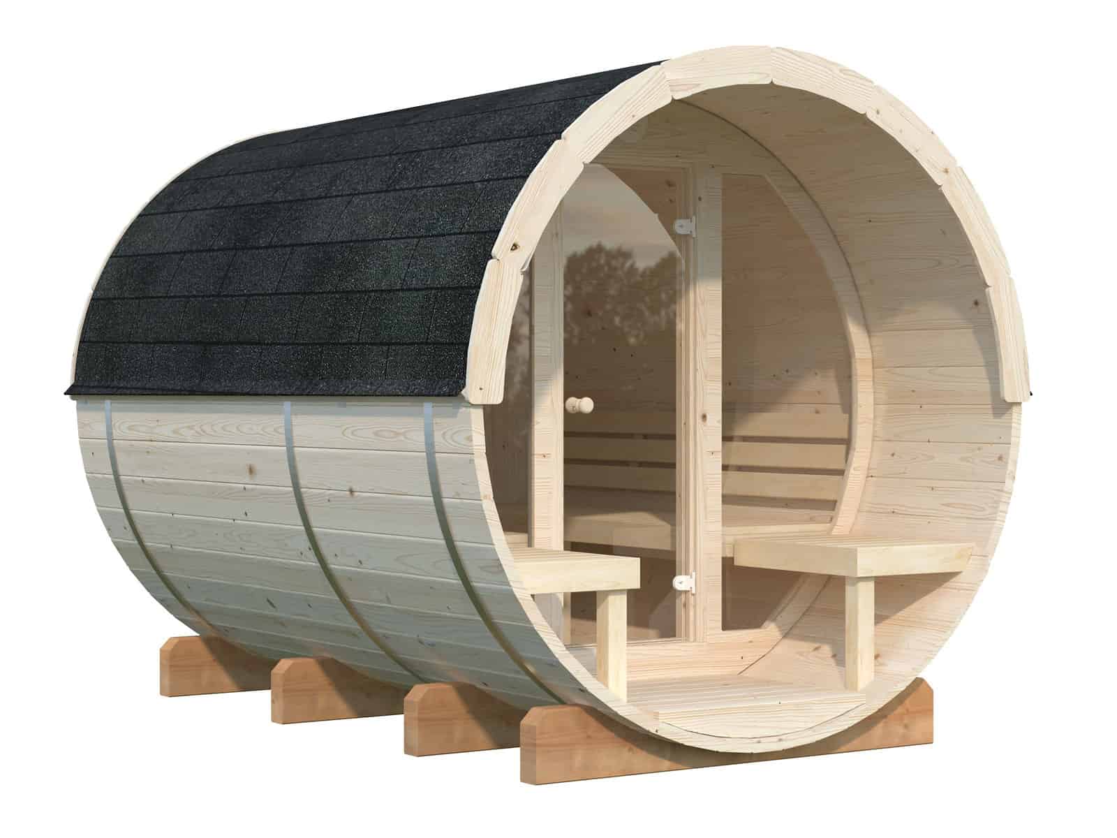 Anita L (2.2x2.9m | 1.6+0.7m2 | 42mm) Timber Garden Barrel Sauna with Glass Wall