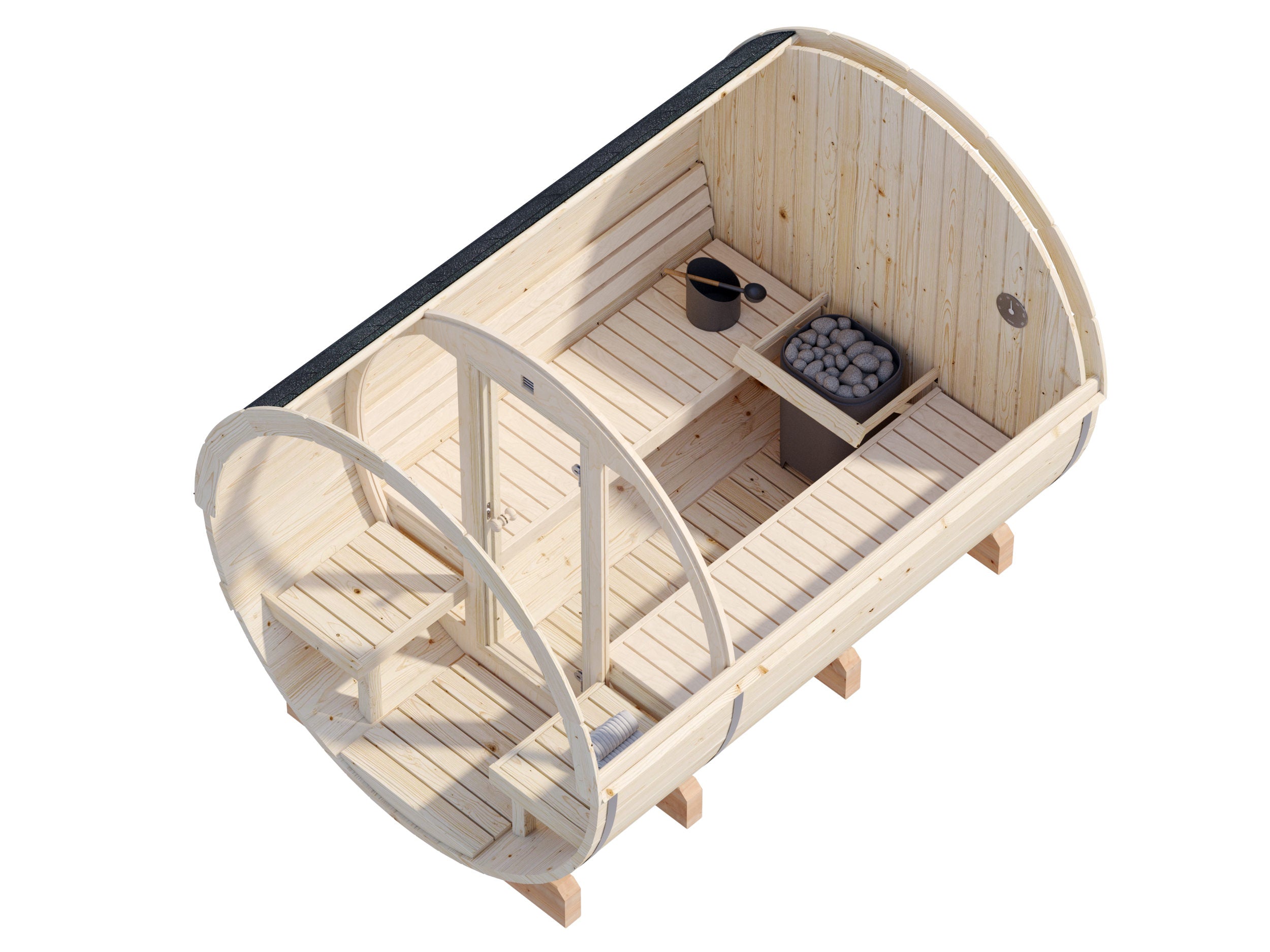 The barrel design of the Anita L is crucial for promoting excellent air circulation, ensuring an even and efficient heat distribution throughout the sauna. The unique shape allows hot air to rise and circulate naturally, while cooler air is drawn in through lower vents, providing a consistent and comfortable sauna experience.