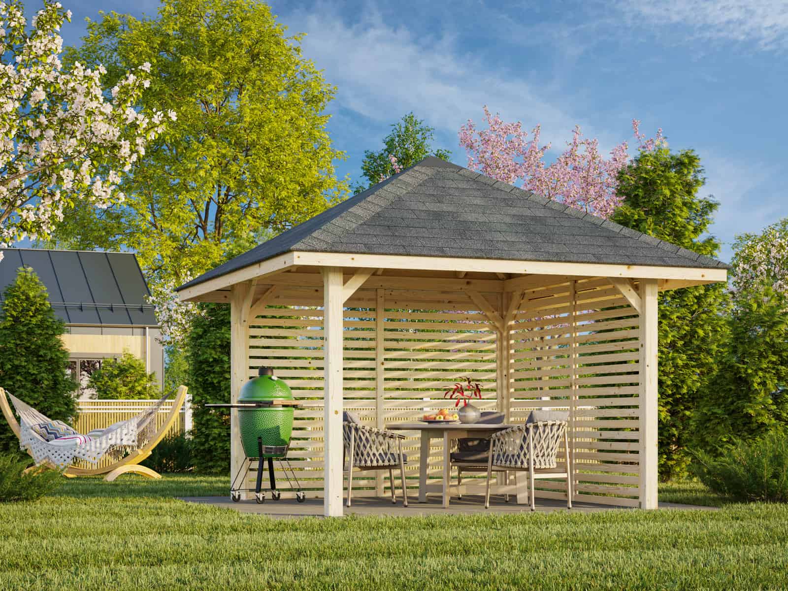 - Fully Painted Fascia Boards and Slats: All sides are coated in a stylish RAL7016 to complement any garden setting.