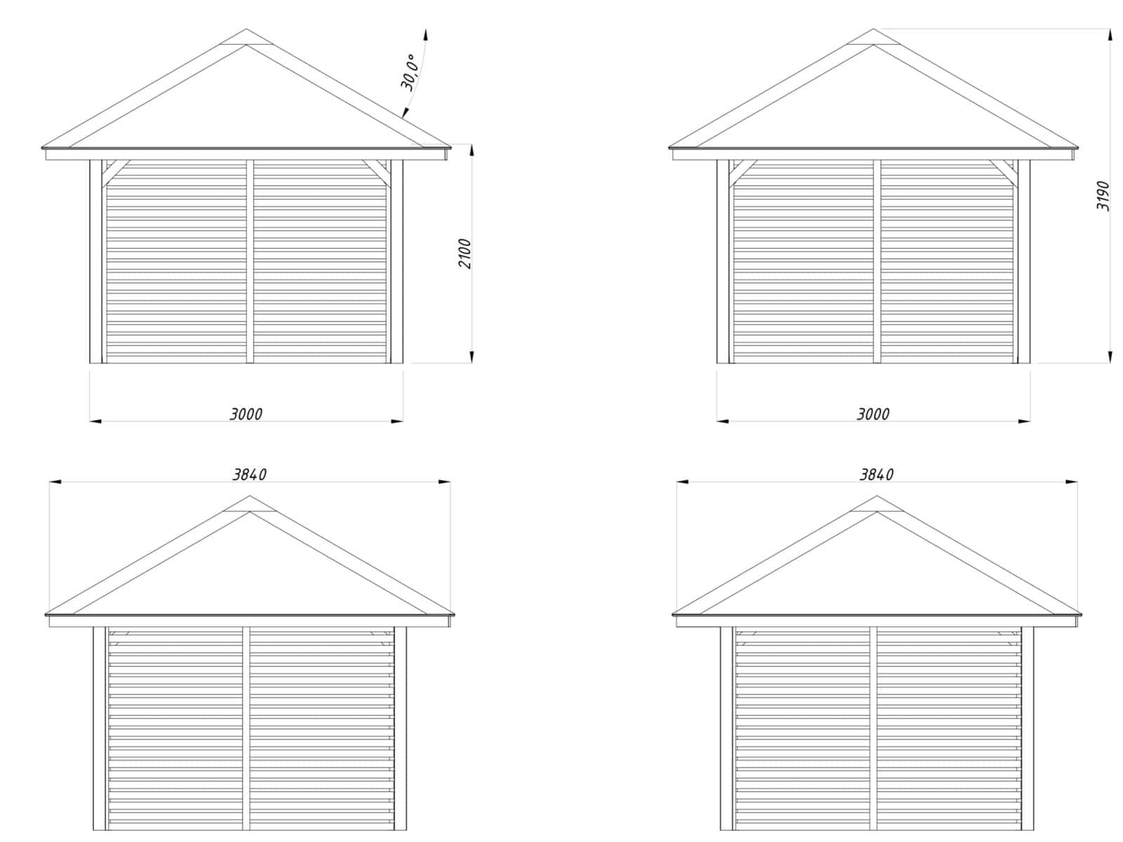 - Roof angle: 30.0º