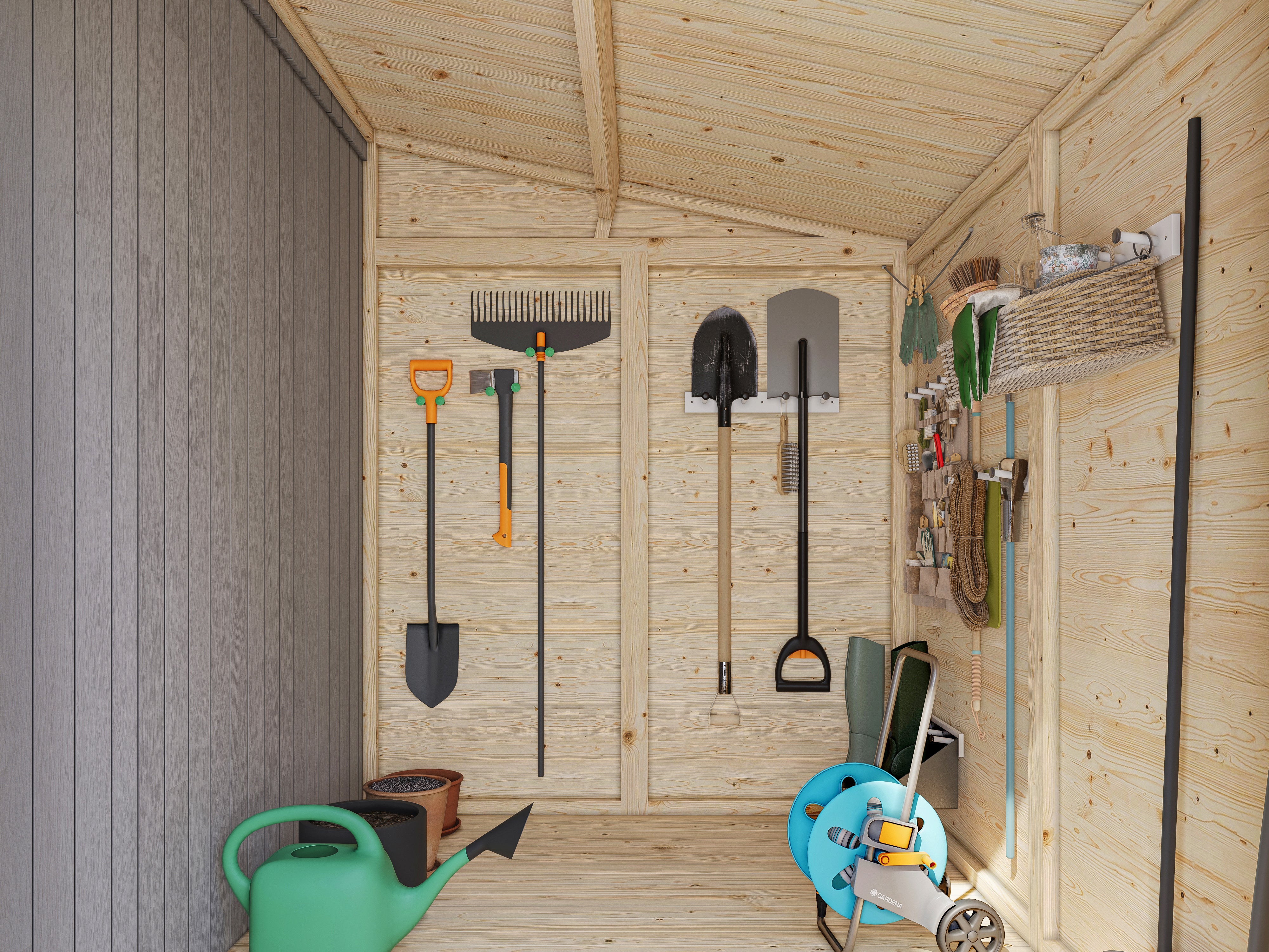With an internal area of 3.6 m² and external dimensions of 222x165 cm, the Mia S is an ideal choice for compact spaces. It’s designed to maximize storage capabilities while maintaining a small overall size, making it a great fit for smaller gardens or as an additional storage area alongside other buildings.