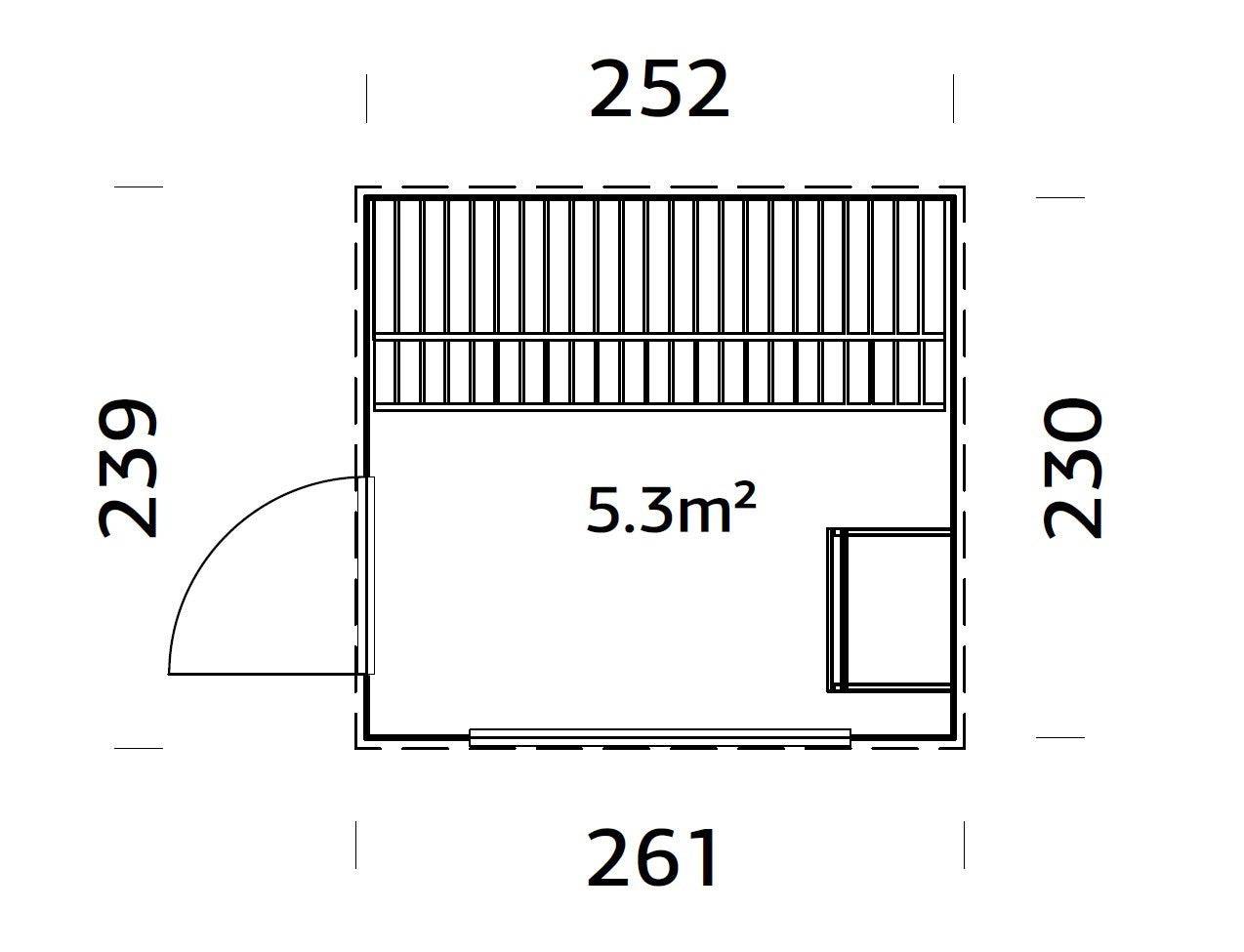 - Floor area: 5.3 m²