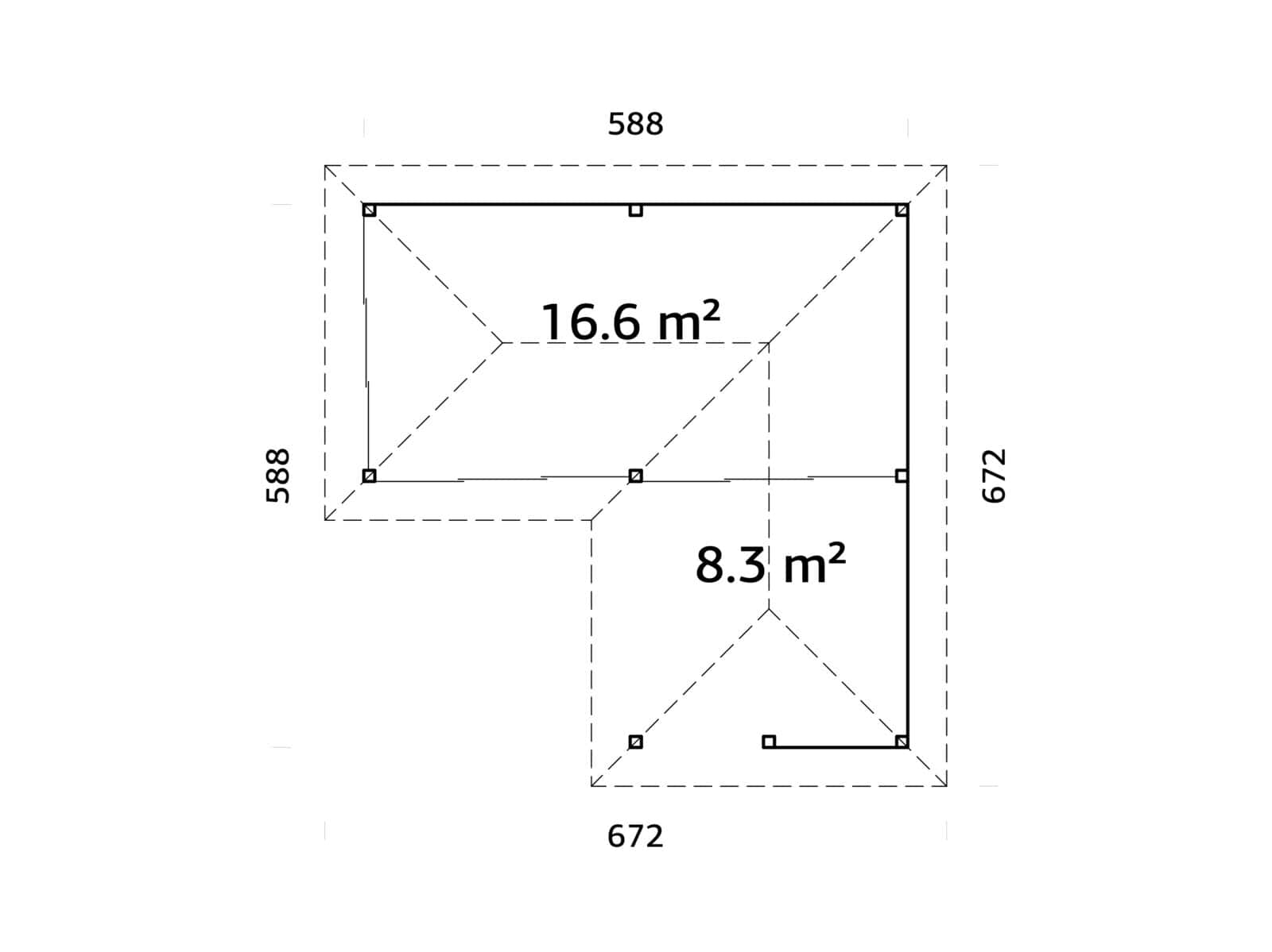 Installing a garden house begins from preparing a perfectly level and square foundation. Pouring a concrete foundation is not essential for that purpose; lightweight construction blocks, concrete slabs or posts are also suitable as a base. They need to be dug partly into the ground and levelled before installing the house in order to prevent the house from sinking.