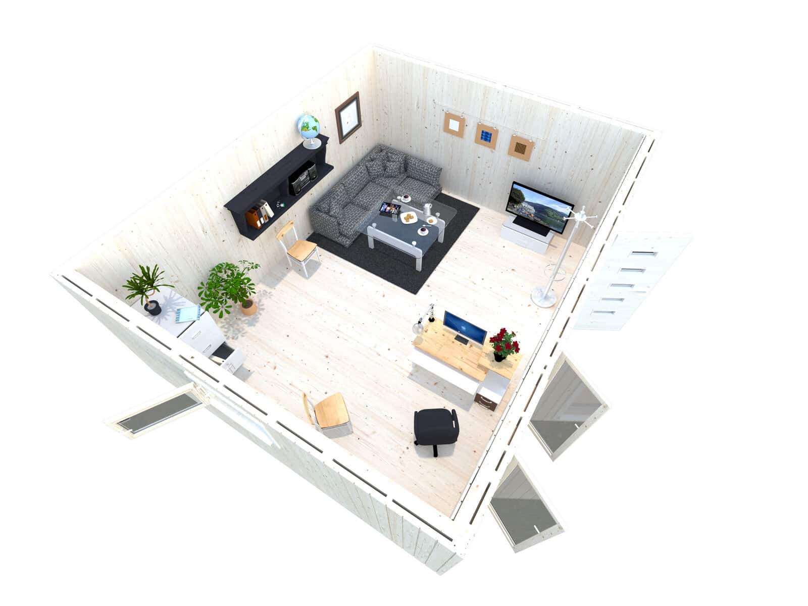 The Charlotte garden room stands out with its modern Scandinavian style and meticulous attention to detail. Ideal for those seeking a blend of aesthetics and functionality in their outdoor space, this model offers a versatile setup that can be tailored to various uses, from a luxurious garden office to a vibrant entertainment room.