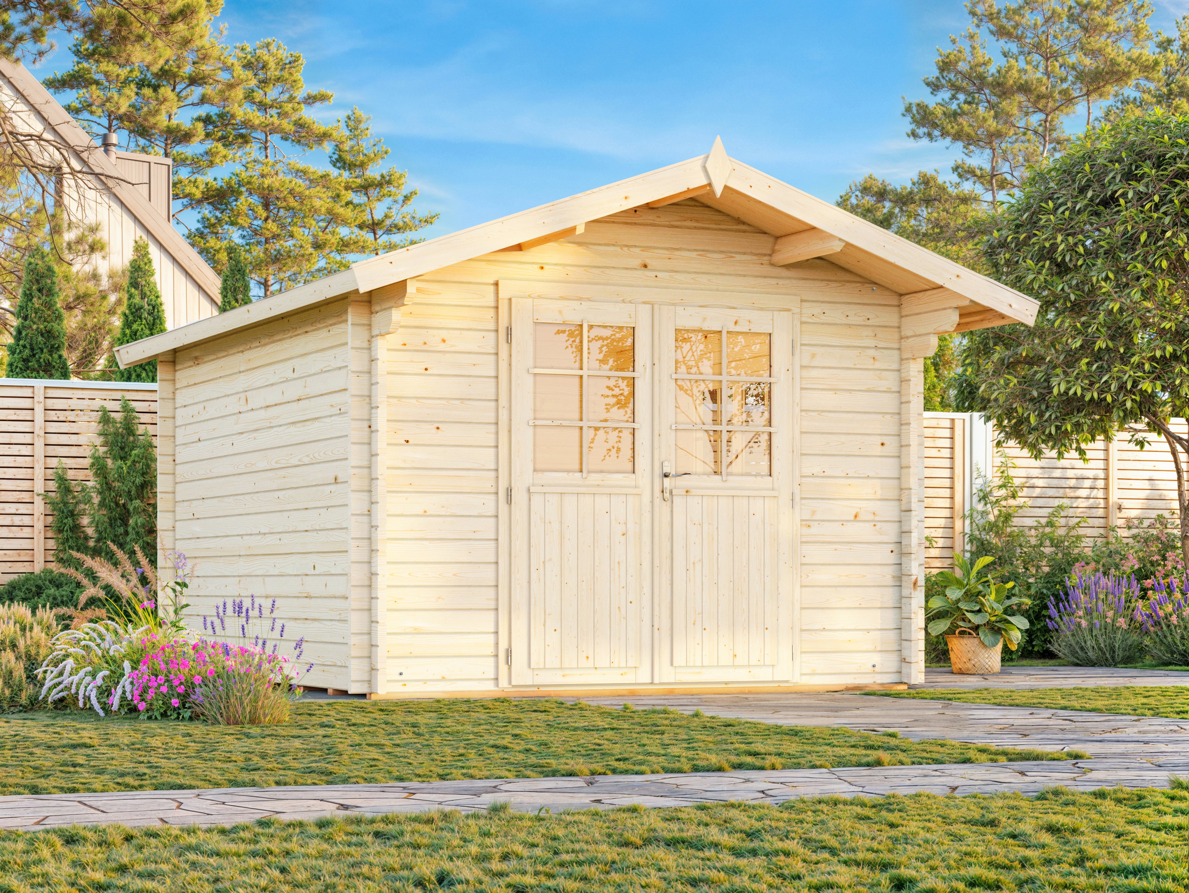 - 44mm Thick Wall Logs: Dense, interlocking logs for superior insulation and structural stability.