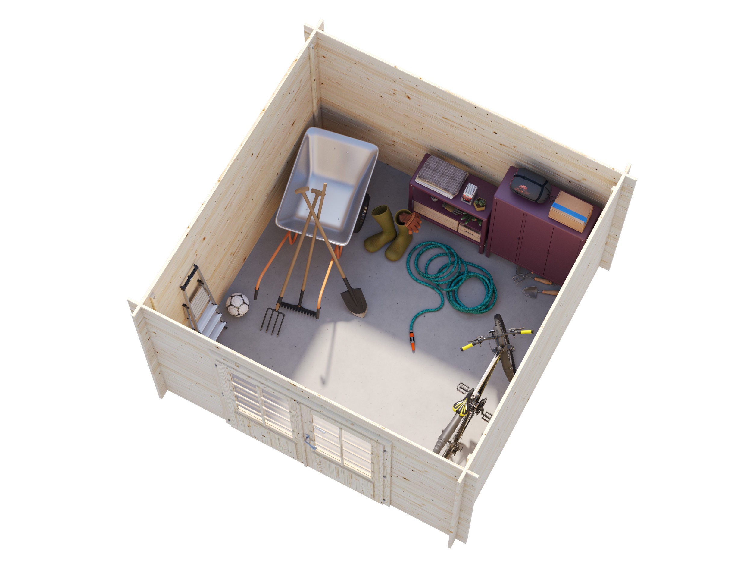 - Roof and Flooring: Comprised of 19mm tongue and groove boards, ensuring stability and durability.