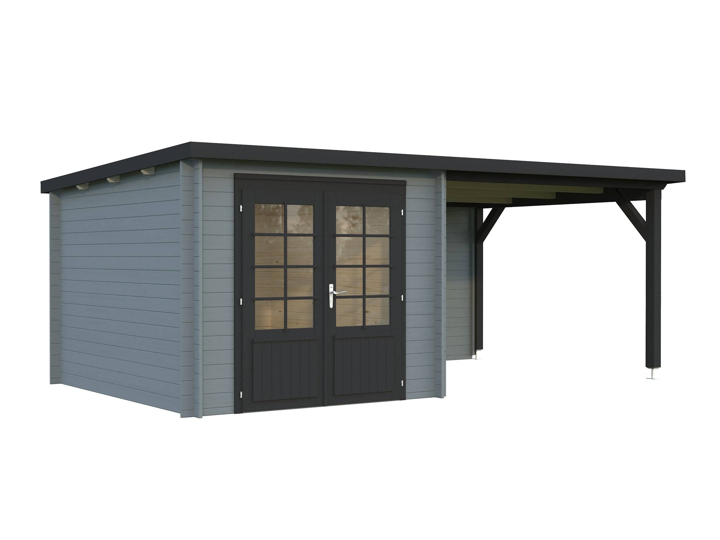The Ella roof summer house features a modern design with a flat roof and clean lines, offering a perfect blend of indoor and outdoor living spaces. This model is particularly notable for its dual-functionality, providing both covered outdoor space and secure indoor storage, making it an ideal choice for those looking to maximize their garden's usability.