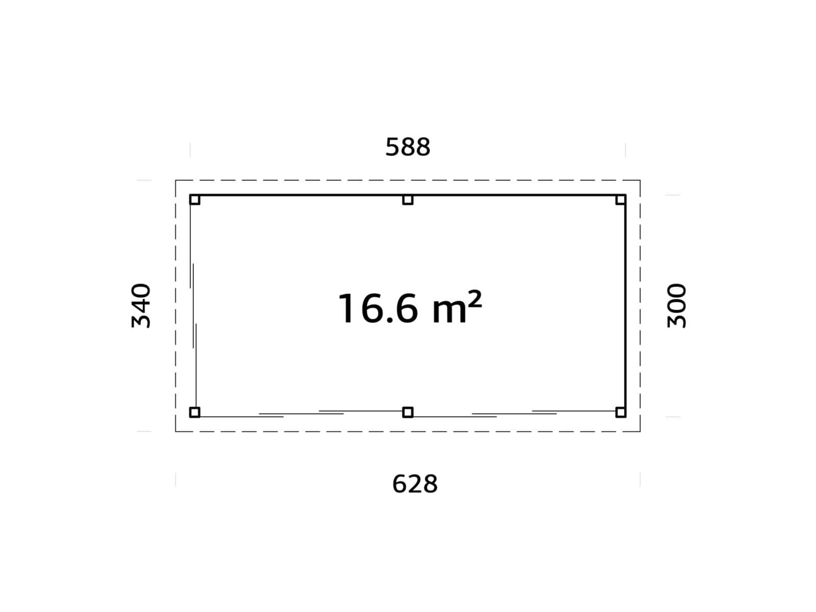 Installing a garden house begins from preparing a perfectly level and square foundation. Pouring a concrete foundation is not essential for that purpose; lightweight construction blocks, concrete slabs or posts are also suitable as a base. They need to be dug partly into the ground and levelled before installing the house in order to prevent the house from sinking.