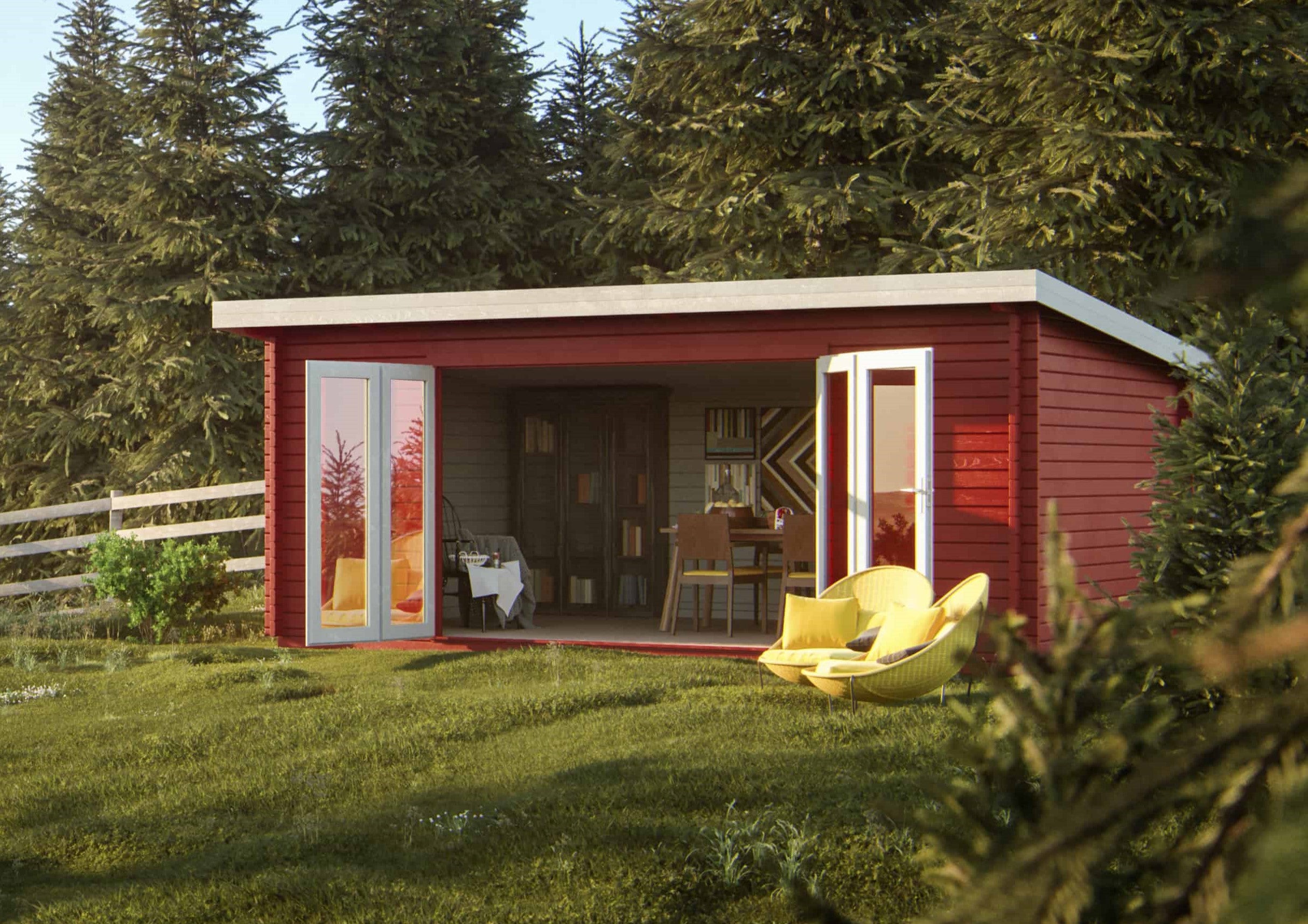 Lea L (5.5x4m | 19.4m² | 44mm) Pent Roof Garden Room with Bi-Fold Doors