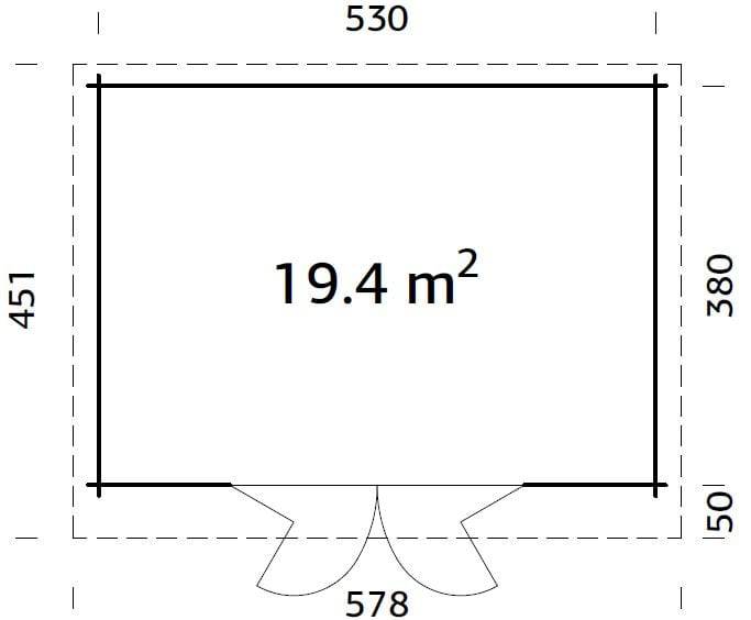 This garden room's large internal area of 19.4 m² makes it highly adaptable for various purposes. It can serve as an elegant extension of your home, providing additional dining space, a serene yoga studio, or an efficient home office. The natural insulation properties of the walls and the extensive use of glass make it suitable for year-round use.