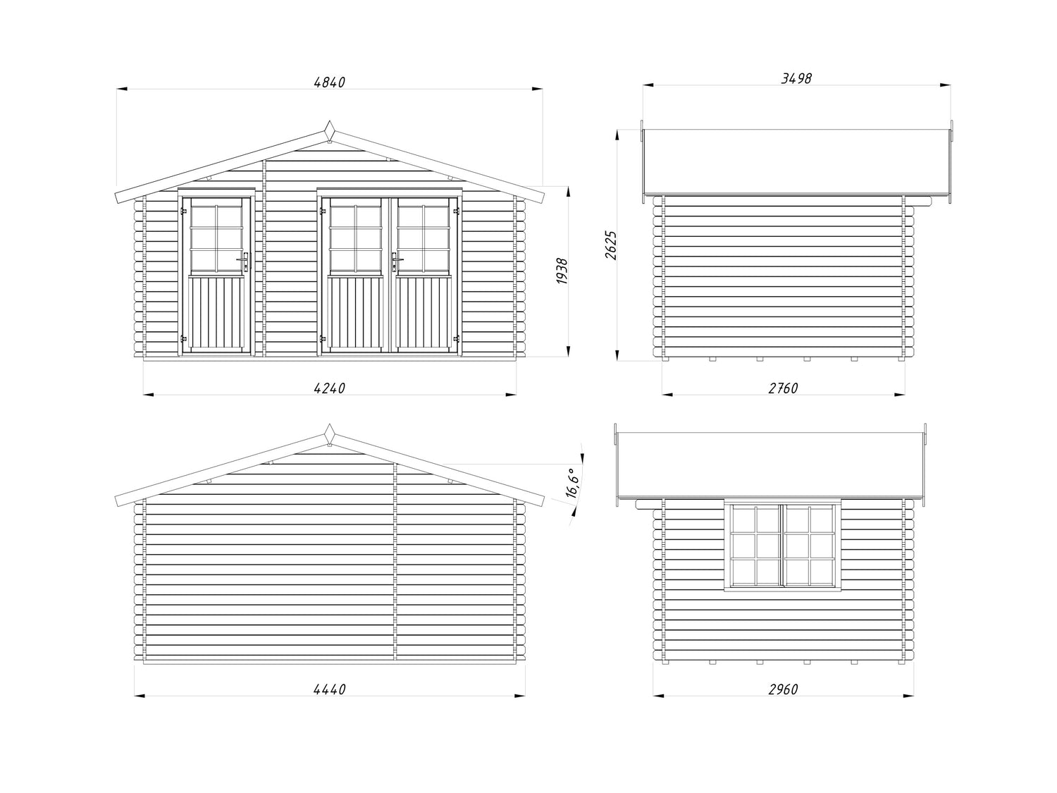 Lodz (5,04x2,96m | 12,9m2 | 28mm) Log Shed
