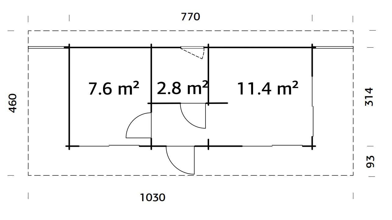 Cecilia M (7,8x3,3m | 21,8m2 | 70mm) 3-Room Modern Log Cottage with Aluminium Doors and Windows