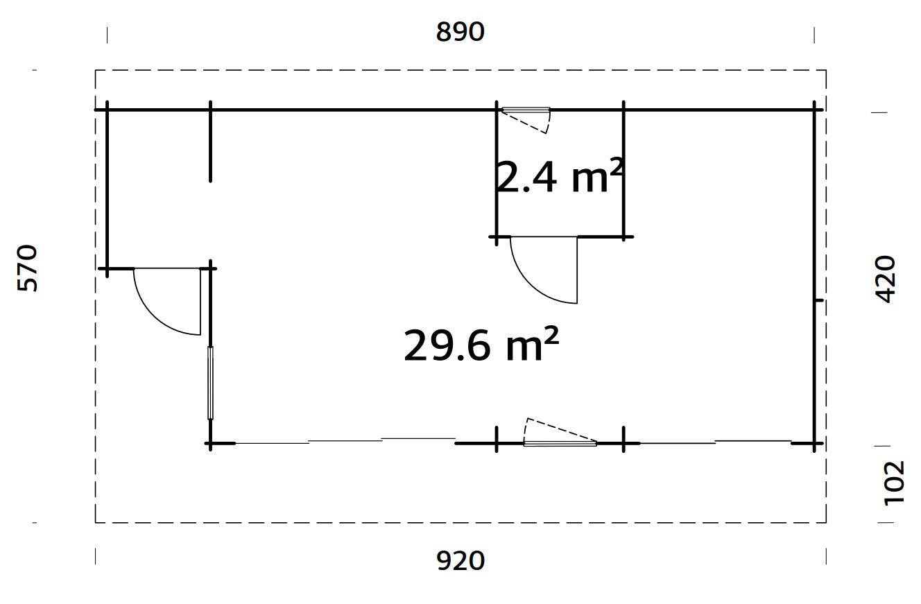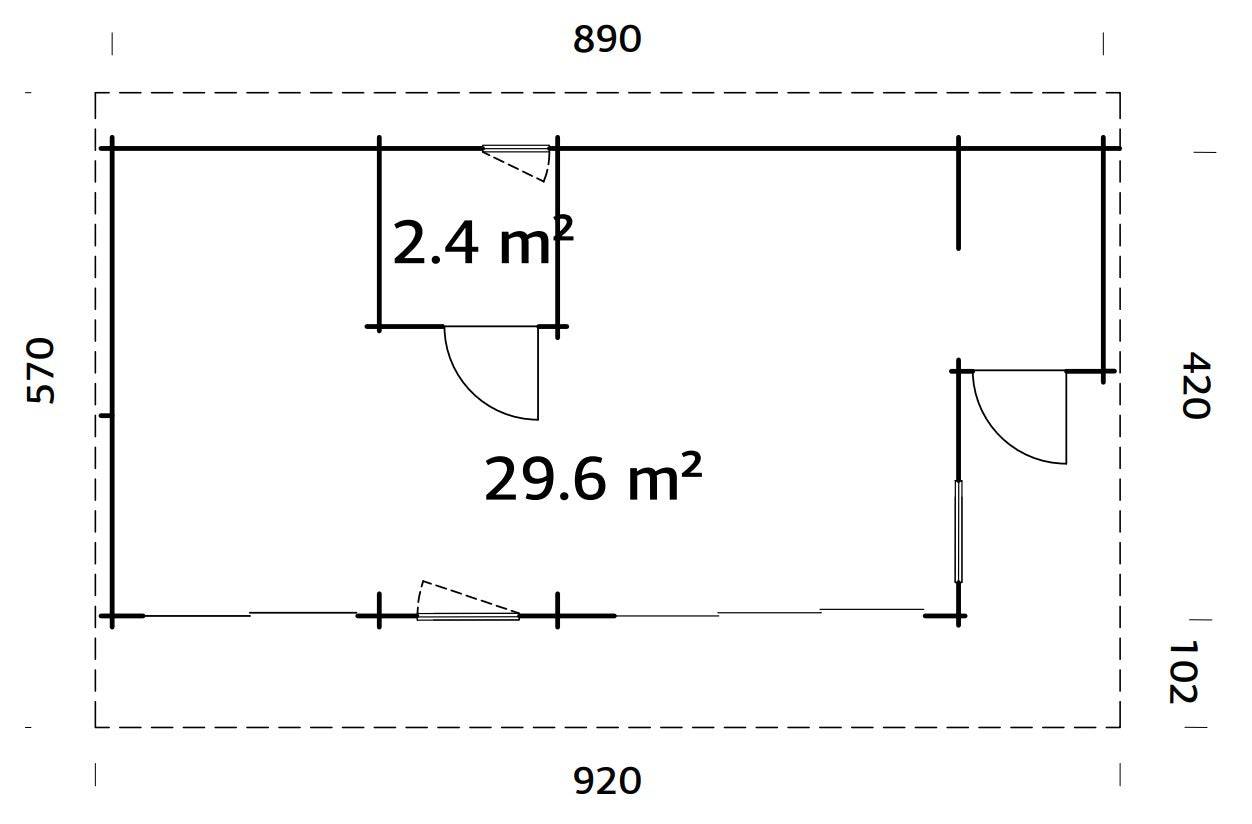![Ines M (3.2x4.1m | 11.1m2 | 44mm) Timber Sunroom with Double Glazed Bi-Fold Doors - Palmako UK]()  Internal area: 32.0sqm